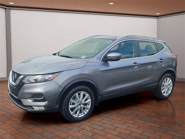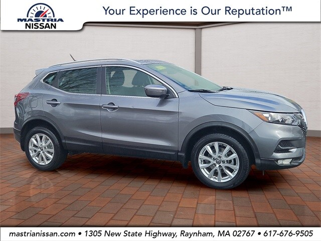 2021 Nissan Rogue Sport SV AWD in Gun Metallic with Charcoal interior, available now at Mastria Nissan, a top rated dealer in Raynham MA.
