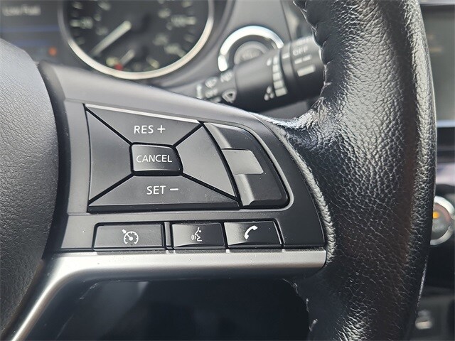 The SV trim offers upgraded comfort and convenience with an 8-way power driver seat including 2-way lumbar support, heated front seats, dual-zone automatic climate control, remote engine start with Intelligent Climate Control, and Nissan Intelligent Key with push-button ignition. A 60/40 split-folding rear seat enhances cargo versatility.