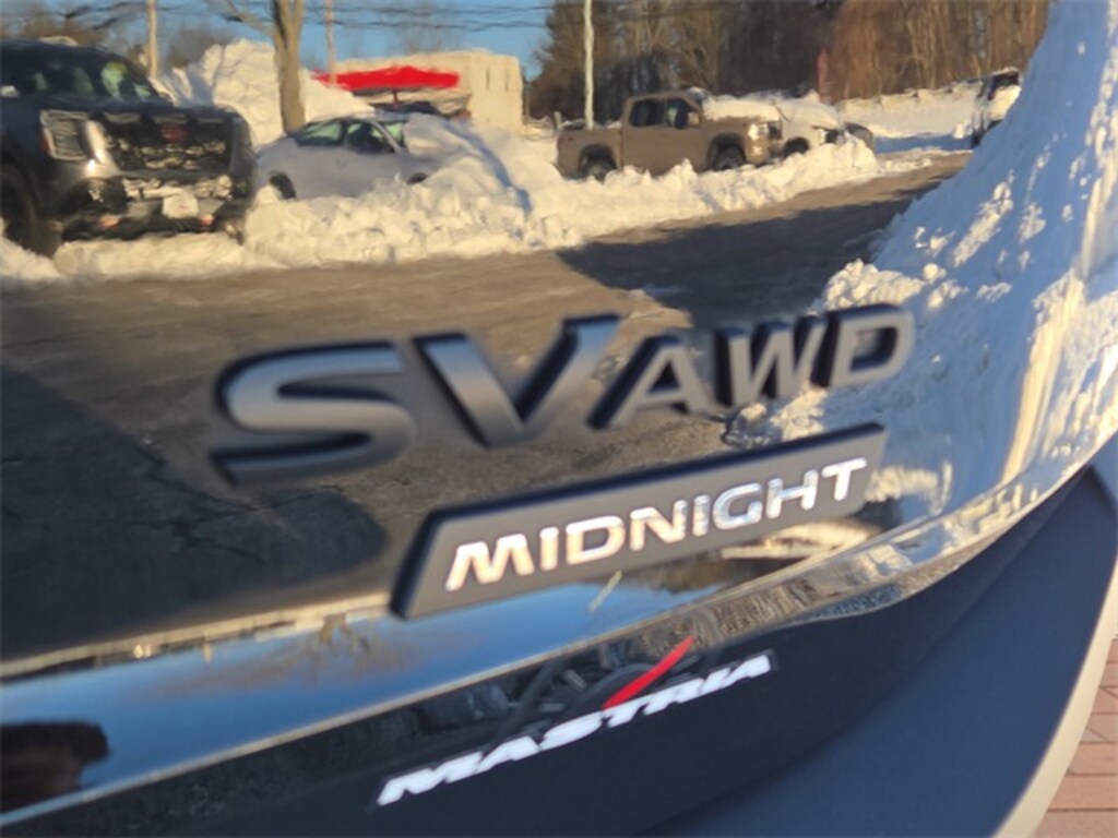 2023 Nissan Rogue SV AWD Midnight Edition available now at Mastria Nissan, a top rated dealer in our area in Raynham, MA. Powered by a 1.5L turbo with Xtronic CVT, Intelligent AWD, and rated at 31 MPG combined (28 city / 35 highway). This Rogue stands out with the Midnight Edition Package including black wheels, black grille, black roof rails, black mirror caps, and black badging.