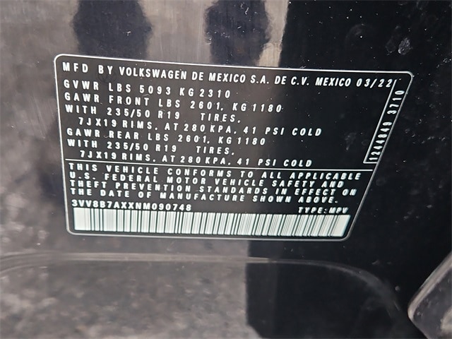 1-OWNER, FULLY SERVICED + VW FACTORY CERTIFIED PRE-OWNED!! FEATURES INCLUDE: IQ.DRIVE including Travel Assist semi-automated driving, Adaptive Cruise Control Stop & Go, Lane Assist, Emergency Assist, Front Assist with Forward Collision Warning and Autonomous Emergency Braking with Pedestrian Monitoring, Active Side Assist blind spot monitor and Rear Traffic Alert, Park Distance Control front and rear with Rear View Camera, Electronic Stability Control with Electronic Differential Lock, Anti-Slip Regulation, Intelligent Crash Response System with Automatic Post-Collision Braking, Hill Hold and Hill Descent Control, Advanced Airbag Protection System, keyless access with push-button and remote engine start, power tilting and sliding panoramic sunroof, V-Tex leatherette seating surfaces with heated power drivers seat and heated front passenger seat, 40/20/40 split-folding sliding and reclining rear seats, dual-zone Climatronic Touch automatic climate control with rear vents, R-Line leather-wrapped multifunction steering wheel with touch controls, 19-inch black alloy wheels with all-season tires, LED headlights with daytime running lights and LED taillights, R-Line exterior styling with black accents and black roof rails, heated power-folding mirrors, Composition Media 8-inch touchscreen with voice control and SiriusXM with 360L, App-Connect smartphone integration with wireless capability, Bluetooth connectivity, wireless charging, multi-color ambient lighting, electronic parking brake, auto-dimming rearview mirror, USB ports front and rear, anti-theft alarm with engine immobilizer, tire pressure monitoring system and LATCH child seat anchors.Odometer is 4279 miles below market average! 21/28 City/Highway MPG