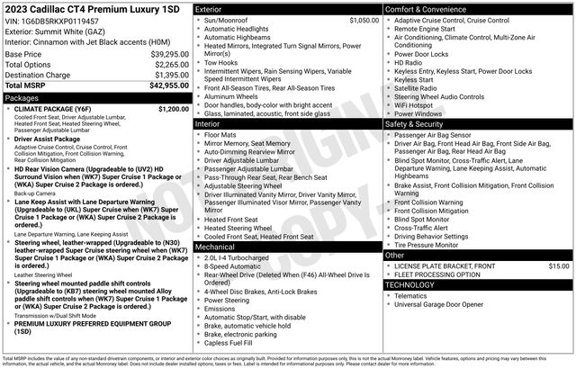 This Cadillac CT4 Premium Luxury is a true testament to the brand's commitment to excellence. With its stunning design, impressive performance, and uncompromising attention to detail, it's the perfect vehicle to elevate your driving experience. Schedule a test drive today and discover the exceptional craftsmanship and capabilities that make the 2023 Cadillac CT4 Premium Luxury a true standout in its class.