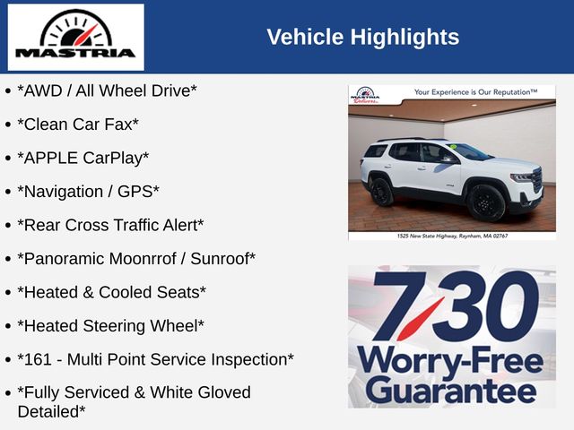 Safety is a top priority in the Acadia AT4, with features like the Rear Cross Traffic Alert and OnStar emergency communication system providing added peace of mind. The SUV's advanced all-wheel-drive system and robust construction make it a confident and capable companion, whether you're navigating city streets or exploring the great outdoors.