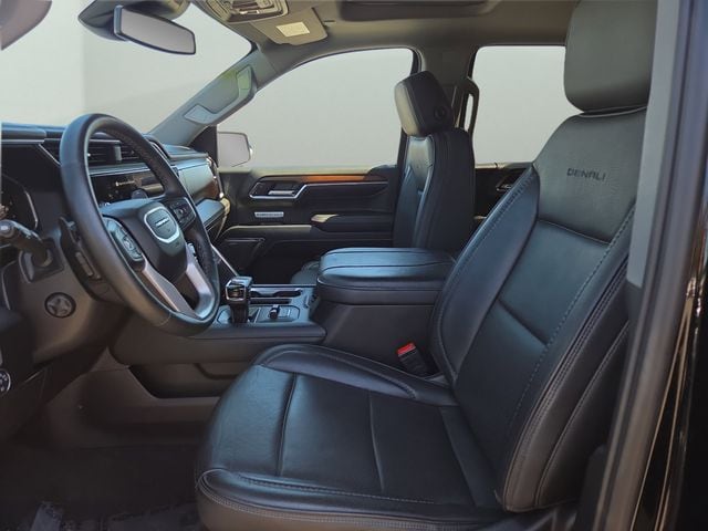 Safety is paramount in the Sierra Denali, with advanced technologies such as Front Pedestrian Braking, Rear Pedestrian Detection, and Ultrasonic Front & Rear Park Assist keeping you and your loved ones protected on the road. The Keyless Open & Start feature adds convenience, allowing you to access your vehicle with ease.