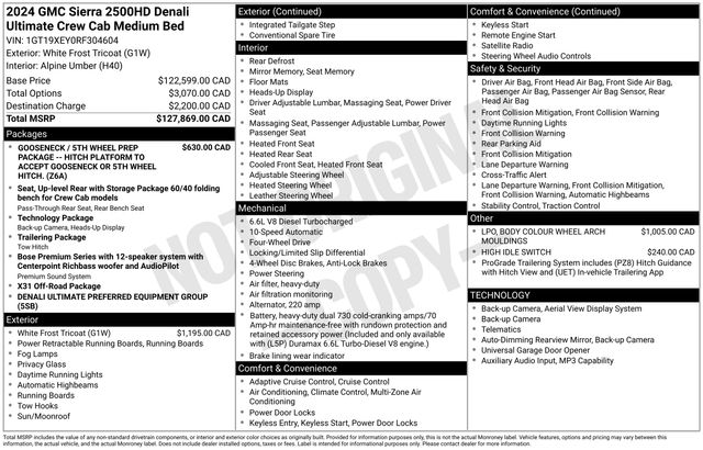 Experience the pinnacle of power and luxury with this exceptional 2024 GMC Sierra 2500HD Denali Ultimate. Boasting a commanding Duramax 6.6L V8 Turbodiesel engine paired with a robust 10-Speed Automatic transmission, this heavy-duty pickup is engineered to conquer any terrain with its impressive 4WD capabilities.