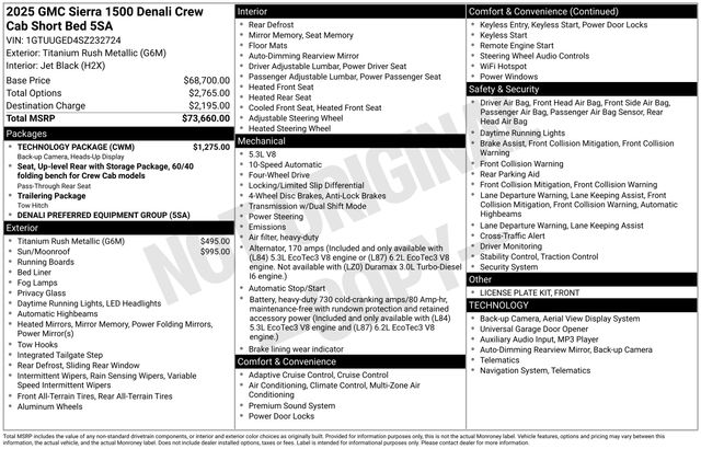 Recent Arrival! Titanium 2025 GMC Sierra 1500 Denali EcoTec3 5.3L V8 10-Speed Automatic 4WD