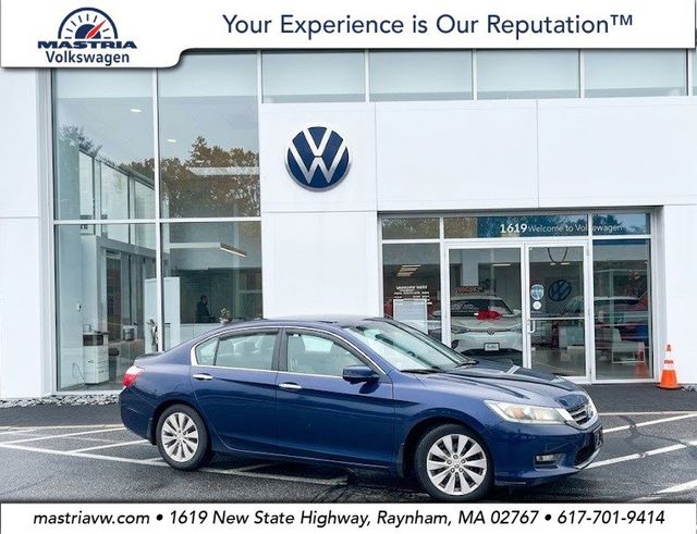 This 2015 Honda Accord EX-L features premium leather-trimmed heated front seats with a 10-way power drivers seat and memory settings, a power moonroof, and a multi-angle rearview camera with dynamic guidelines. The sophisticated cabin is anchored by a dual-screen infotainment system including a 7-inch Display Audio touchscreen with Bluetooth HandsFreeLink, SiriusXM Radio, and an upgraded 7-speaker premium audio system. Driver safety is prioritized through Honda LaneWatch blind-spot display, Forward Collision Warning, and Lane Departure Warning, all while delivering a smooth ride via the 2.4L i-VTEC engine and Continuously Variable Transmission. The exterior is well-appointed with 17-inch alloy wheels, fog lights, heated power side mirrors with integrated turn signals, and a Smart Entry system with push-button start. This midsize sedan is rounded out by dual-zone automatic climate control, an auto-dimming rearview mirror, and HomeLink integration, offering a perfect combination of luxury, efficiency, and long-term reliability.