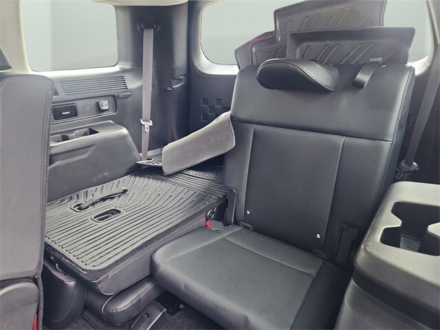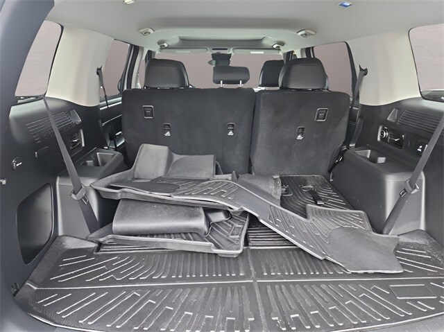 Inside, the cabin is designed for comfort and flexibility with a 3rd row seat, heated front seats, power driver seat with lumbar support, premium synthetic seating surfaces, leather-wrapped steering wheel, keyless entry with push-button start, remote engine start, hands-free power liftgate, multi-zone climate control, and ample cargo space with concealed storage and pass-through rear seating.