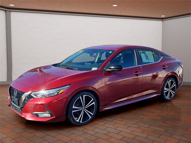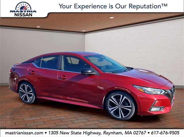 2020 Nissan Sentra 2.0 SR CVT in Scarlet Ember Tintcoat with Sport interior, available now at Mastria Nissan, a top rated dealer in Raynham MA.