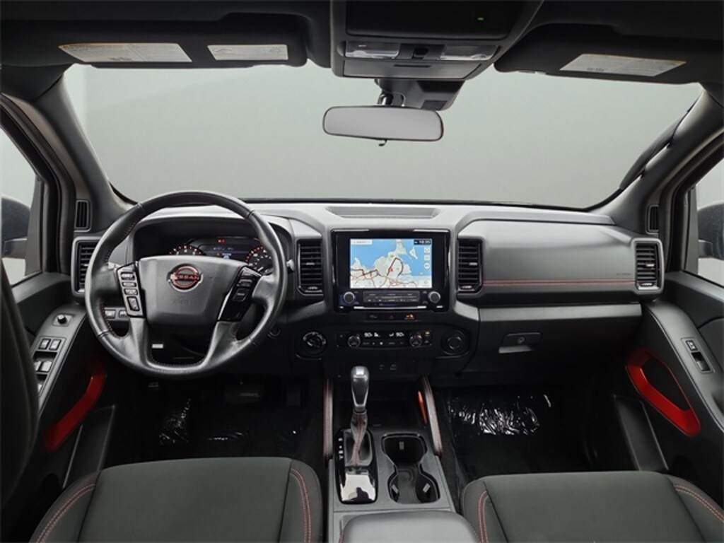 Inside, the PRO-4X Comfort & Convenience Package adds heated front seats, heated steering wheel, dual-zone climate control, power driver and passenger seats, remote engine start, power sliding rear window, leather-wrapped steering wheel, and under-seat storage.