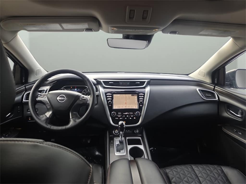 The Platinum trim represents the highest level of Murano luxury. Exterior highlights include 20-inch Hyper Silver alloy wheels, LED low and high beam headlights, LED fog lights, signature LED daytime running lights, silver roof rails, and a power panoramic moonroof that adds both light and presence. Heated power folding mirrors with integrated turn signals and reverse tilt complete the polished look.