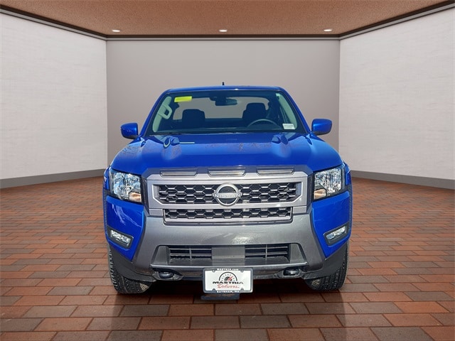 2025 Nissan Frontier SV King Cab 4x4 Automatic V6 in Bluestone Pearl with Charcoal interior, available now at Mastria Nissan, a top rated dealer in Raynham MA.