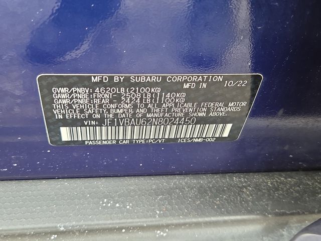 2022 Subaru WRX GT AWD in Sapphire Blue with Carbon Black interior, available now at Mastria Nissan, a top rated dealer in Raynham MA.