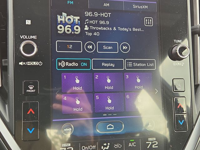 Technology features include Apple CarPlay, Android Auto, navigation system, HD Radio, SiriusXM with real-time traffic display, Bluetooth connectivity, premium sound system with 11 speakers, backup camera, adaptive cruise control, and smart device integration. Steering wheel audio controls and a large infotainment display keep key functions within easy reach.