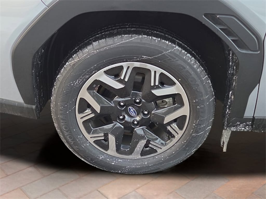 Finished in Ice Silver Metallic with a Gray interior, the Forester Premium stands out with LED headlights, auto-leveling lamps, daytime running lights, fog lamps, heated power mirrors, aluminum wheels, privacy glass, and rugged black cladding with black wheel-well trim. A panoramic sunroof adds open-air brightness to the cabin while complementing its sporty, modern styling.