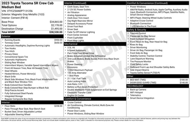 Discover the perfect blend of capability, comfort, and style with this 2023 Toyota Tacoma SR V6. This rugged and versatile pickup is ready to take on any adventure, whether you're tackling off-road terrain or navigating the city streets.