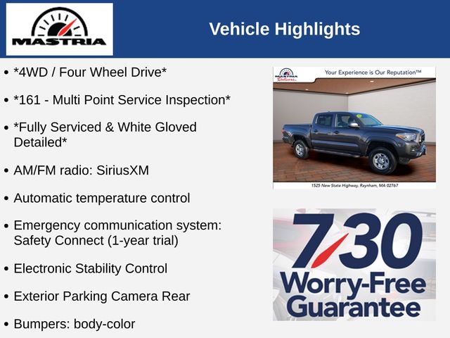 Boasting a powerful 3.5L V6 engine with 278 horsepower, this Tacoma delivers impressive performance and efficiency, with an EPA-estimated 18 MPG in the city and 22 MPG on the highway. The 4WD system ensures confident handling and traction, making it a true workhorse that can handle any task you throw its way.