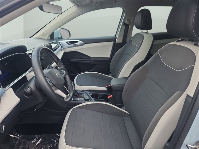 2025 Volkswagen Taos SE finished in Monument Gray with a Black interior, a smartly equipped compact SUV offering comfort, technology, and all-weather confidence. Powered by a turbocharged 1.5L engine paired with an 8-speed automatic transmission and Volkswagen 4Motion full-time all-wheel drive, the Taos SE delivers a smooth, efficient, and confident drive in all conditions.